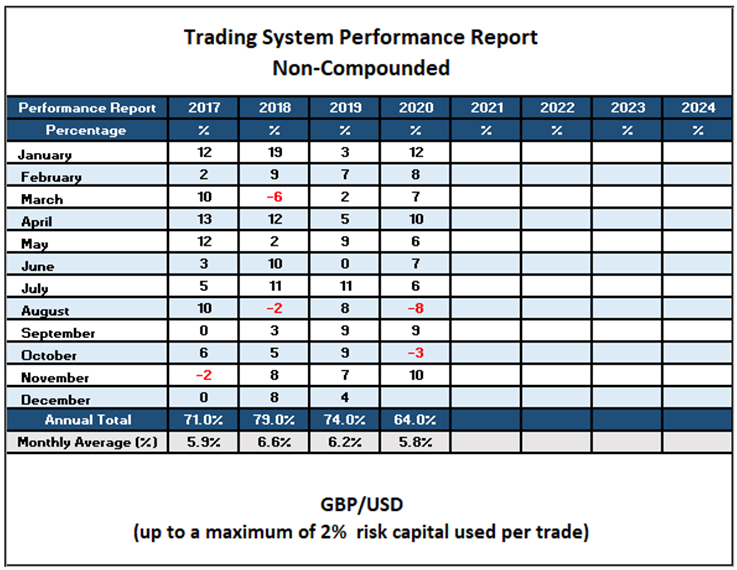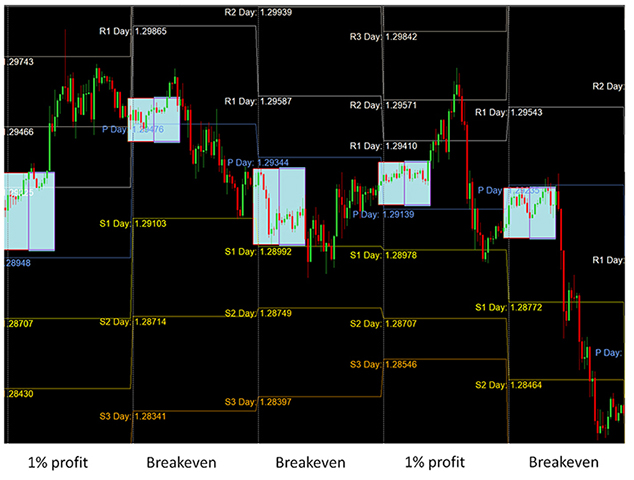 The trading system is formulated with a set of predefined numerical inputs that incorporate various factors around potential breakout areas. Unless a currency breaks out in a certain direction, no trade is placed.